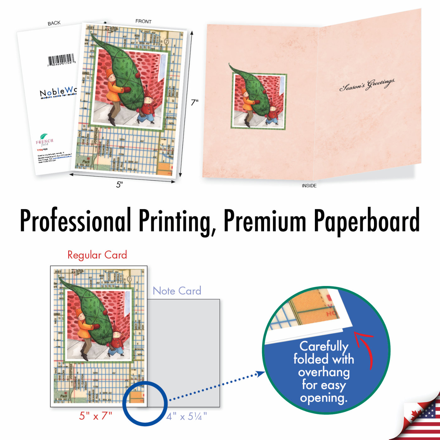 Image Only: A Parent And Child Bringing Home A Christmas Tree, With A Map In The Background.