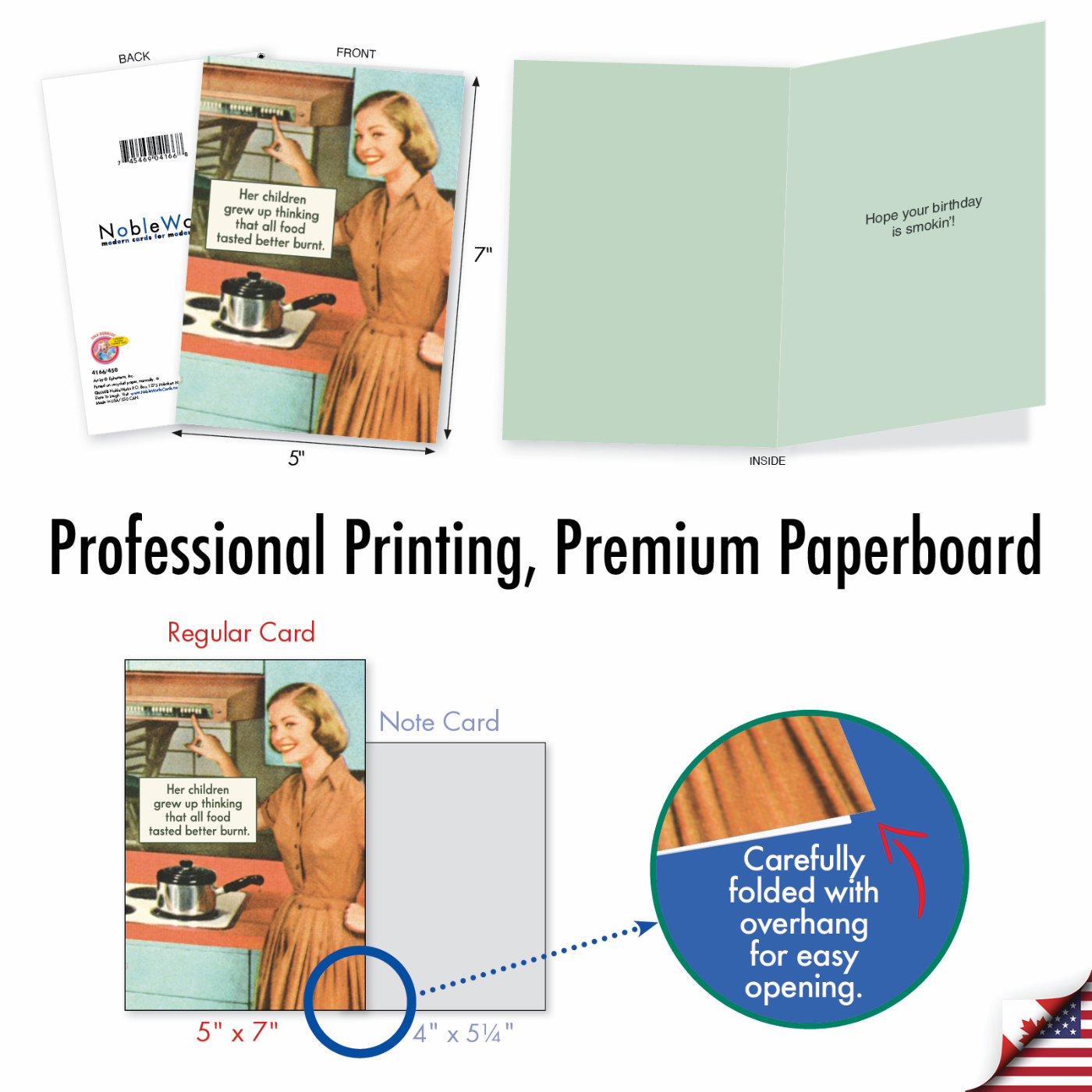 Burn, baby, burn! Any Birthday girl or boy, woman or man, you know will be heating up with laughter and good cheer when you give them this hilarious Happy Birthday card cooked up in the creative kitchens at NobleWorks. The humor is well done in retro mother/wife imagery and hysterically hot punchlines, so that you can inflame your mom, dad, brother, sister or other special person celebrating a Birthday with flaming delight and amusement. The joke detector just went off - on this smoking garrulous gag birth anniversary greeting!