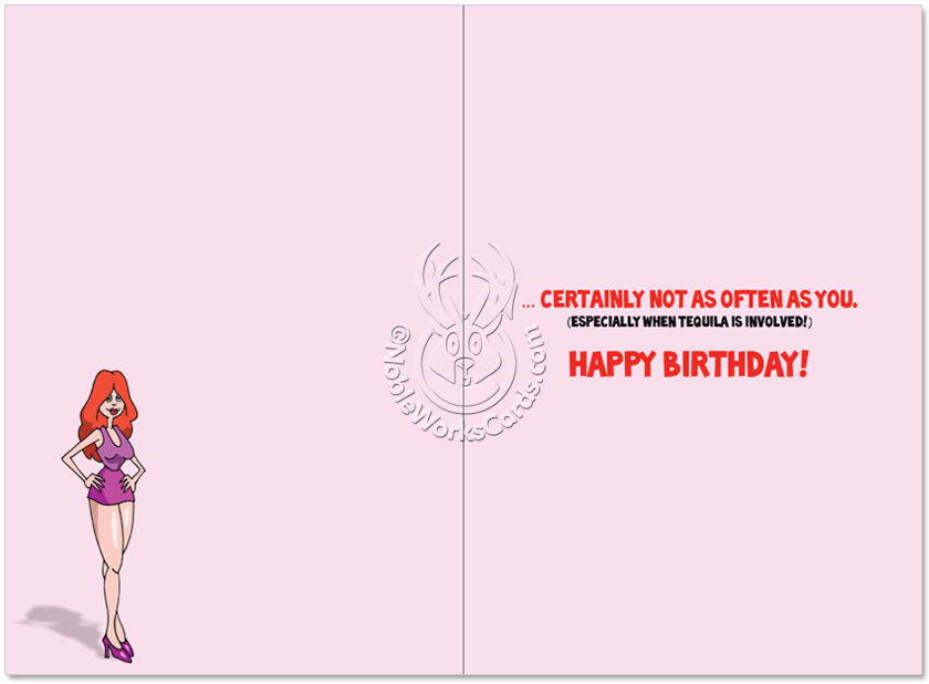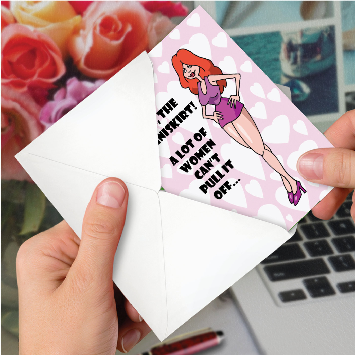 Mini-skirts are definitely sexy, especially when they're appropriate for just the right woman. A funny birthday greeting card meant to compliment the right woman who can pull it off... with or without Tequila.
