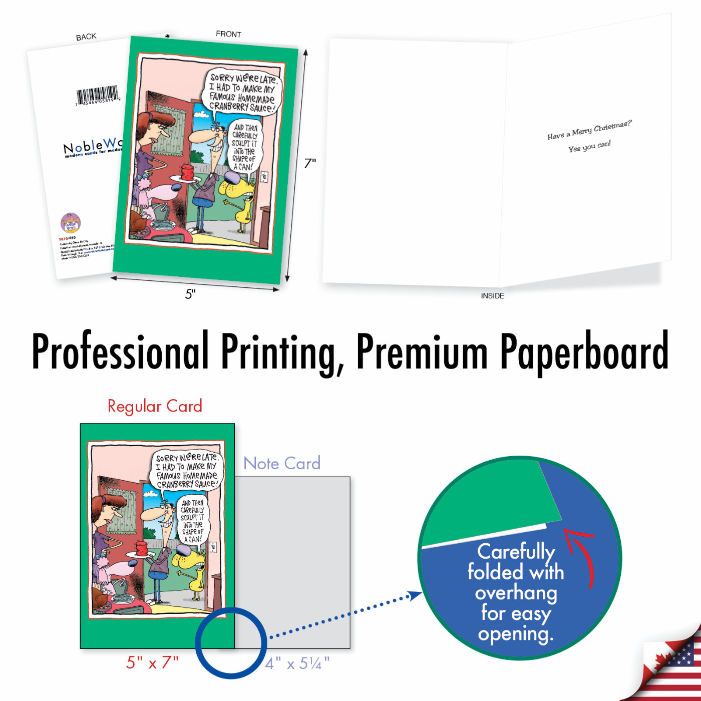 It's hard to pretend that your cranberry sauce is homemade when it's shaped like a can, but that doesn't stop the person in this cartoon. Hopefully you'll be a little more tactful this holiday season. But if you are planning on bringing something can-shaped, maybe you should opt for this cranberry sauce card instead. It is available from NobleWorksCards.com.