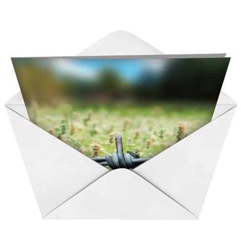 Know any really "sharp" people? Someone with a kind of "prickly" personality? Anybody who could use a hilariously barbed greeting card to cheer them up with a wiry and wily laugh? Then this is the hysterical middle finger fencing All Occasions card to give them! They'll be amazed and delighted by the humorous, highly strung and profanely stinging gag greeting, become entangled in their appreciation for your rugged thoughtfulness and goodwill.