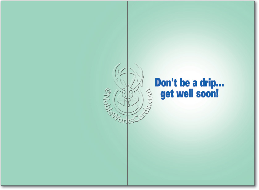 Their healing recovery from an illness, sickness or surgical procedure is in the bag - when you send that currently ailing friend, family member or colleague this funny, feelgood, fit for complete consumption Get Well card. What adult wouldn't greatly benefit from a booze IV, after all!? Absolutely cheer up and buck up anybody presently suffering from a health issue or medical condition by generously setting them up with this tastefully hilarious Get Well greeting.