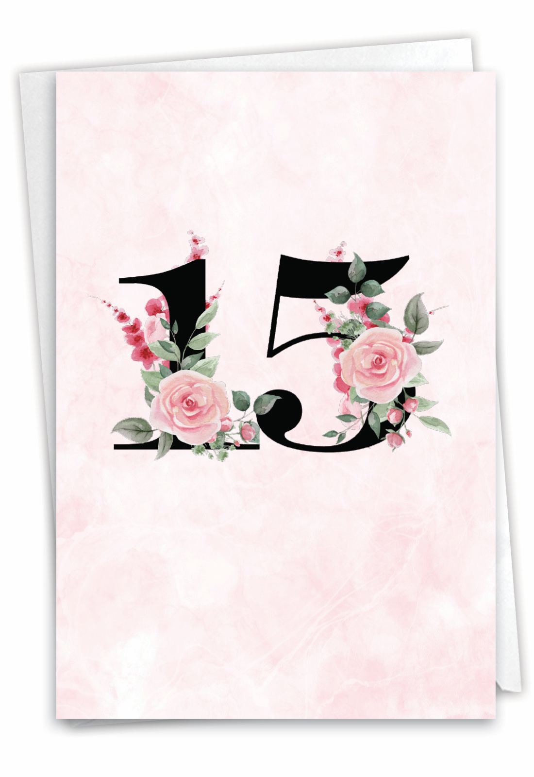 Fifteen years of work at any company or organization, or in any occupation or field of employment endeavor, is a significant achievement. More than worthy of a wonderful Fifteenth Work Anniversary greeting card to salute and pay tribute to such an accomplished, dedicated, long term employee, workmate or friend or family member. The artistic, creative and colorful 15th Work Anniversary card on sale here pays flowery workplace homage to that devoted, skilled and talented staff member who has been on the job, doing a great job, for 15 years.