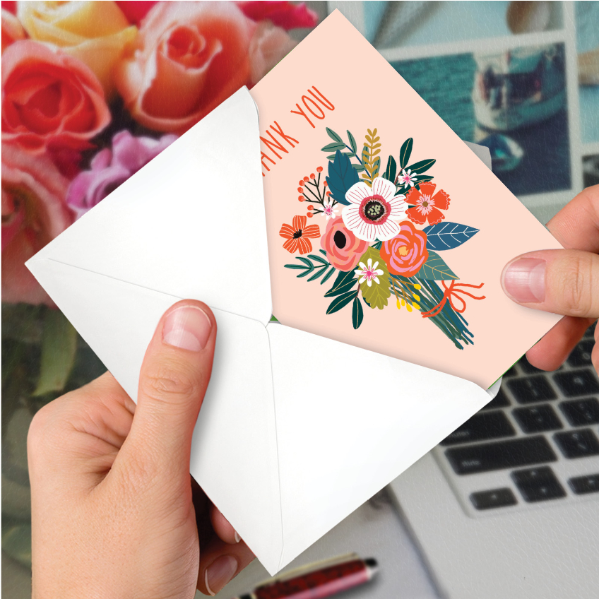 Birthdays can really only be special with a little help from your friends, family members and/or colleagues, or with a lot of help from a whole group of awesome people. If your recent Birthday was elevated to epic heights by a friendly, family and/or workmate-like effort, make sure you show your Thanks for what he, she or they did on your celebratory behalf by sending out the Birthday bouquet of a Thank You card on sale here. Displaying a lovely arrangements of colorful flowers, leaves, buds and vines, and your great gratitude times two, this gorgeous greeting will provide a fitting and fantastic finale to one fine Birthday party.