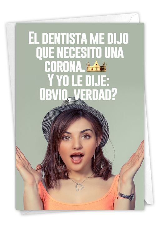 Queen for the day? Si! Crown one of your fabulous Spanish-speaking female friends, relatives or coworkers on their big Birthday coronation day using this hilarious and appropriate Feliz Cumpleanos gag greeting card. That regal Hispanic lady you know will royally love it!