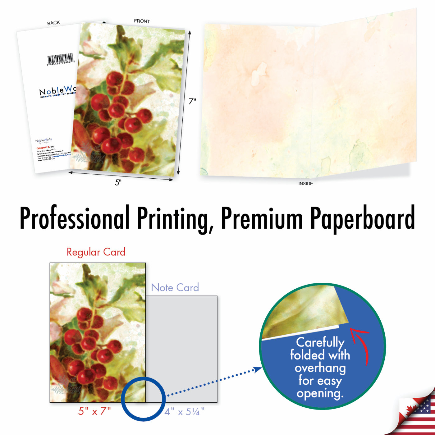Celebrated for the bright red berries and rich green foliage it displays even during the darkest day of winter, the holly bush offers a message of hope to all who see it. That's just one reason why the Happy Holly Days Thank You Card from NobleWorks Cards is so popular with customers. This greeting card features an artist's interpretation of the holly bush in full bloom with vivid red berries in watercolor pastel tones. Snowflake images are overlaid in a subtle pattern to give the card more dimension. Looking at this painting is the next best thing to walking in a greenhouse full of lush holly bushes. This artistic card is a lovely way to say Thank You to recipients. The card's inside echoes the soft, cloudy green background of the front and has a simple message of 'Thank You' imprinted.
