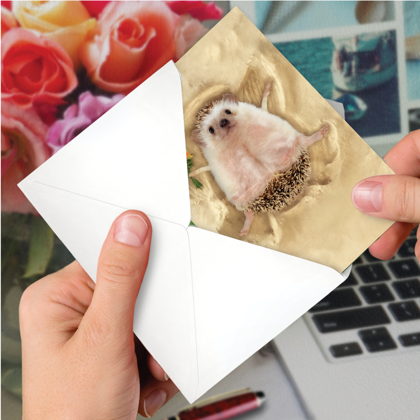 [hedgehog making a sand angel]
