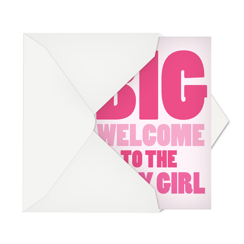 The arrival of a new baby girl is HUGE! A tremendous event deserving of enormous congratulations. Well, here's the perfect, pink hued card to convey your humungous best wishes to the joyful parents. Worded in stunning, vivid, extra-large, red and pink letters, your kudos and best wishes are spelled out for the entire happy family to see and greatly appreciate!