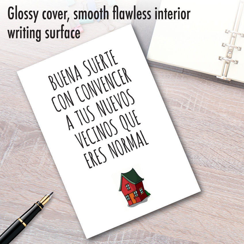 If any of your Hispanic friends, family members or coworkers are moving into a new house, apartment or condominium, make sure you gift them a great, hilarious New Home Congratulations greeting card, like the one available here, as a humorous and heartfelt housewarming gift. This Spanish worded card features an illustration of a cute little red house, along with a hysterical gag message. Those Puerto Ricans and Mexican Americans you know on the move, be they actually abnormal or not, will be unpacking plenty of laughs and good feelings when you send them the amusing New Home Congratulations joke card.