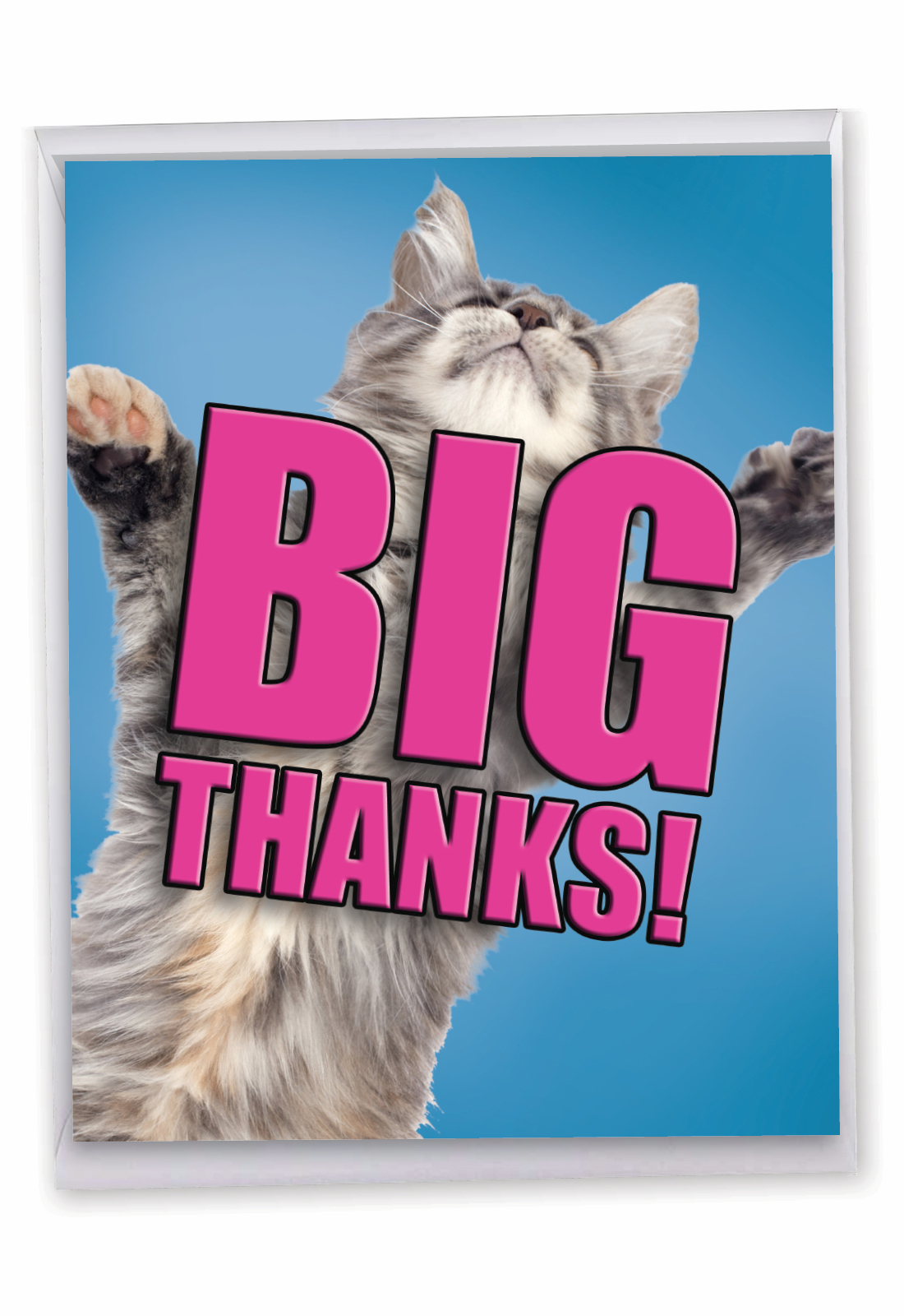 BIG THANKS, from a little kitty! An adorable grey cat rapturously expresses its huge, furry thanks on this cute Jumbo Size Thank You Card. The purr-fect choice to send thanks to that special someone. Petting in return possible.