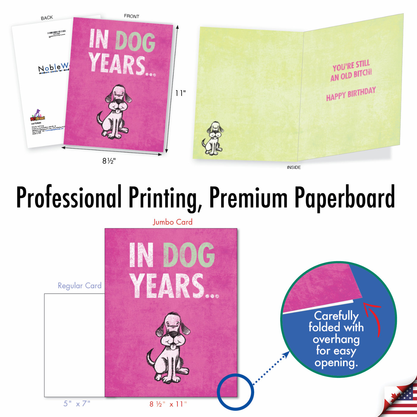 What appears to be a cute comment on how young a person is in dog years, turns out very differently on the inside. This birthday card adds light-hearted, teasing insult to the injury of getting older. The cute puppy cartoon and the female dog reference inside are all meant in good humor.