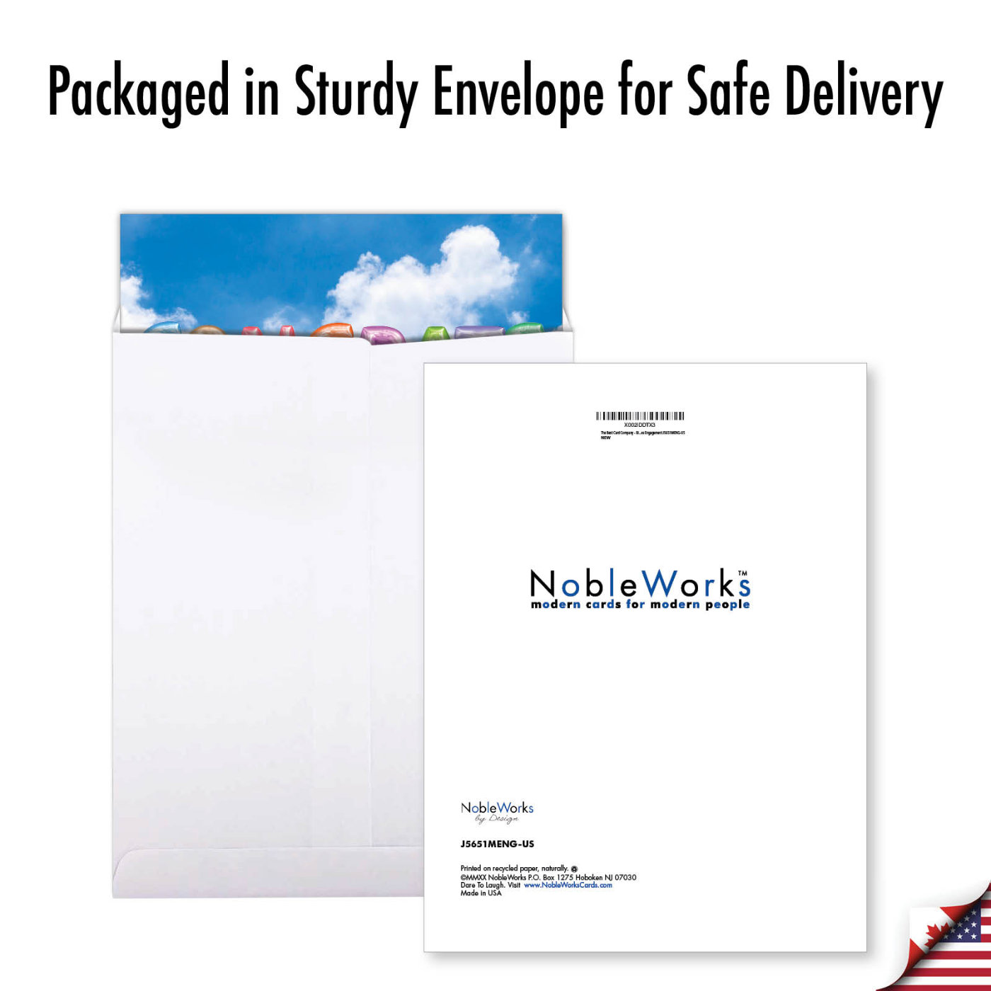 Add to the super sky-high excitement associated with some perfect couple getting engaged by gifting the happy pair this soaring, sailing, sensational Congratulations giant card. Everybody's best wishes are spelled out in big, beautiful, balloon letters against a sunny blue sky background, outside and inside. It's a hugely colorful and creative way to convey everyone's epically lofty joy to that loving duo who have their heads in the blissful, fluffy clouds.