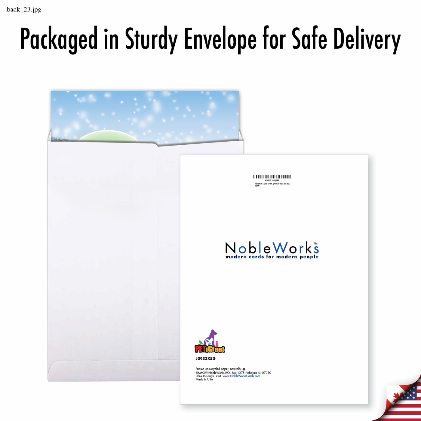 If you're looking for funny Christmas cards with dogs, NobleWorks Cards has got you covered. Your four-legged friends won't be left out in the cold this holiday season when you send friends and family a warm holiday wish featuring two adorable dogs. The funny Jumbo Size My Paws Are Frozen Christmas Card design highlights one of the biggest challenges of being a little dog in a big dog's world. The card depicts two popular dog breeds standing together in the snow with one pup looking noticeably colder than the other. Give your dog-loving friends and loved ones a treat this holiday season by sending them a funny Jumbo Size My Paws Are Frozen Christmas Card.