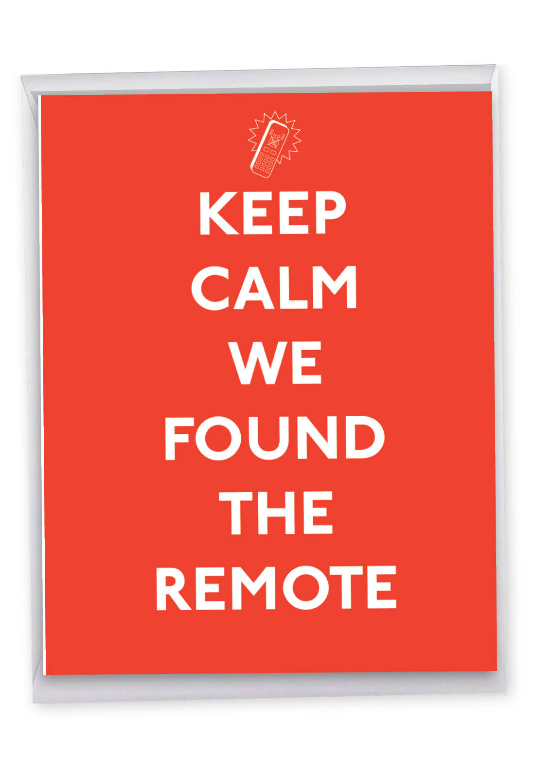 If your dad needs to have himself a relaxing Father's Day, here's one way to calm him down: with this big, funny Father's Day card from NobleWorks that reassures him with the message in white 'Keep Calm We Found The Remote' splashed against a bright red background. The only thing that might keep Dad from being calm is the fit of laughter this large, funny Father's Day card is likely to cause.