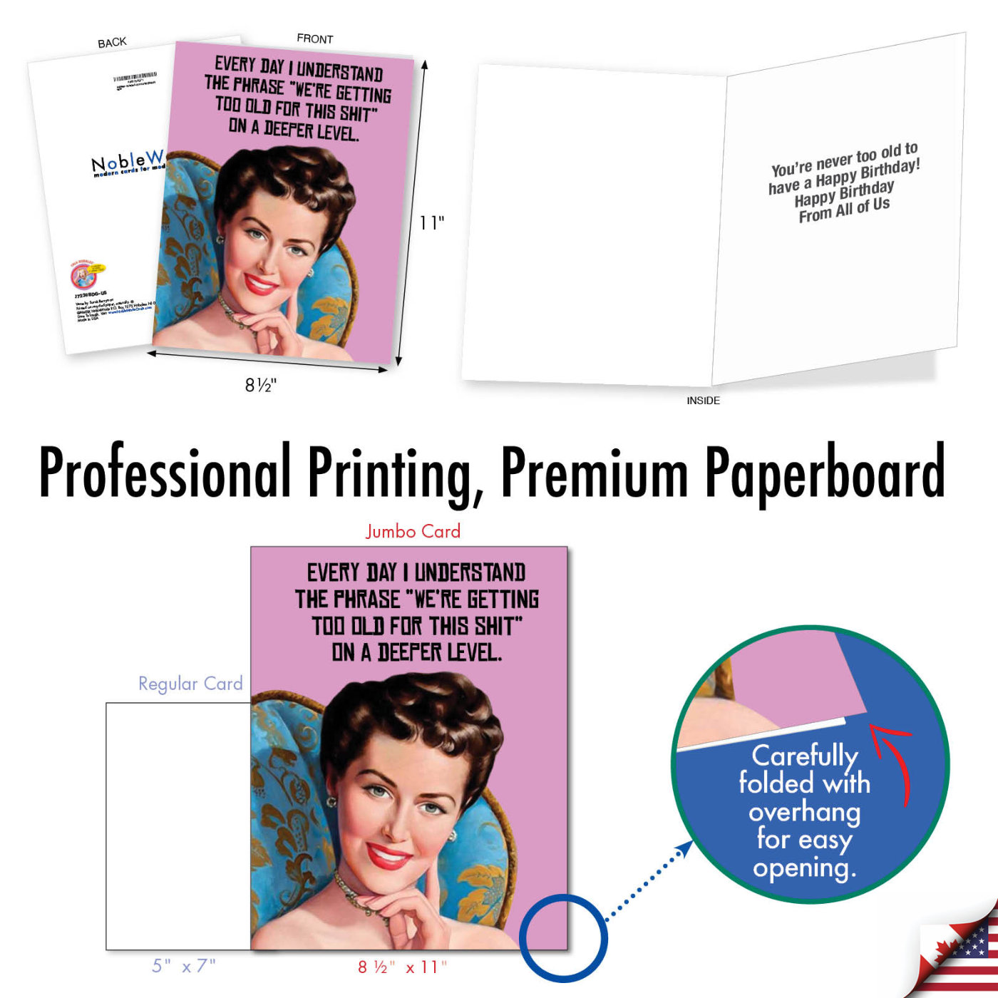 A classy, brown-haired lady sitting in a blue and gold upholstered chair ponders a piece of profane advice on a different plane as she ages; on this classic, hilarious, huge, profound, big B-Day greeting card. Brightly and beautifully rendered, and bowel-movingly captioned, this large, lovely, laugh-out-loud, philosophical card is fit for anybody caught up in the aging and gauging process, but still has there crap together to some degree. Do be fickle and fecal when it comes to selecting massive Birthday cards, and secrete and excrete this epic one on out to somebody special.