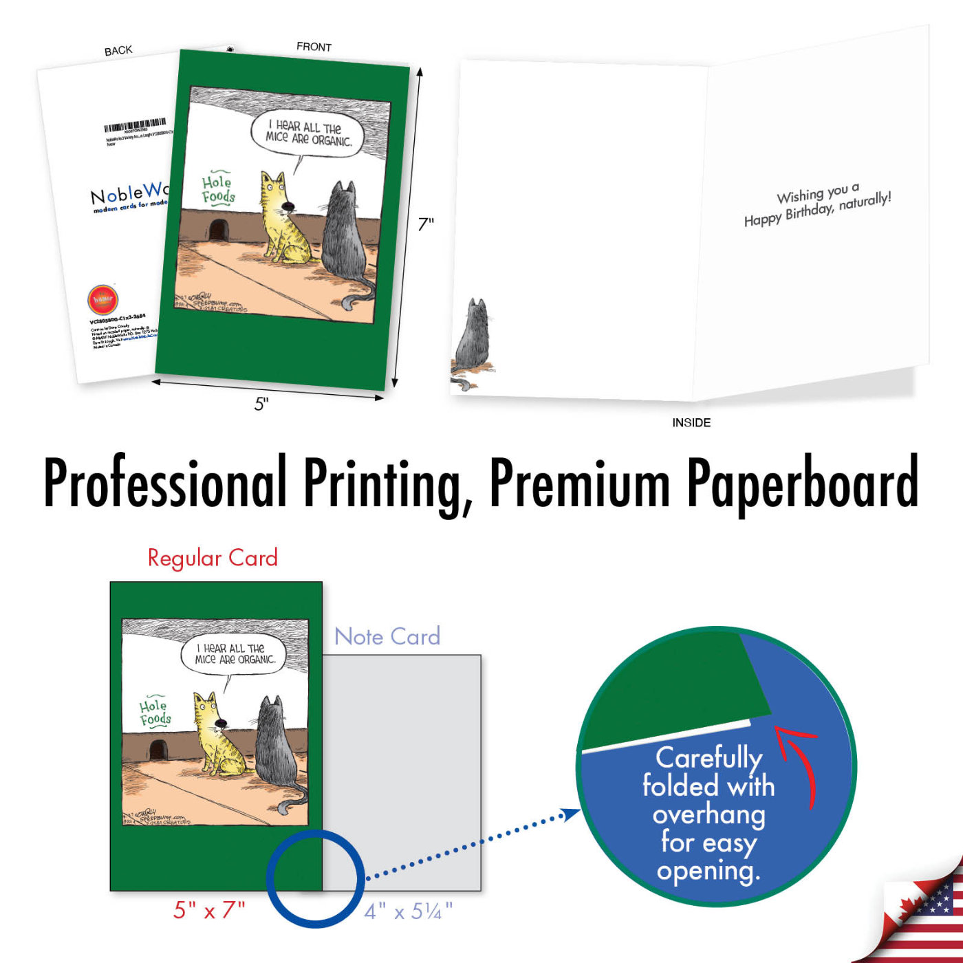 Everyone - adults and children alike - love a cute, funny, furry cat Birthday card! Three such fabulous feline greetings are herded together in this cuddly collection so that you can easily treat all those special two-leggers you know celebrating a big Birthday to some colorful, clever, cartoon, kitty-rific amusement and amazement. The warm and fuzzy B-Day greeting card gaglines and illustrations don't get any more hysterically adorable than in this purring perfect selection.